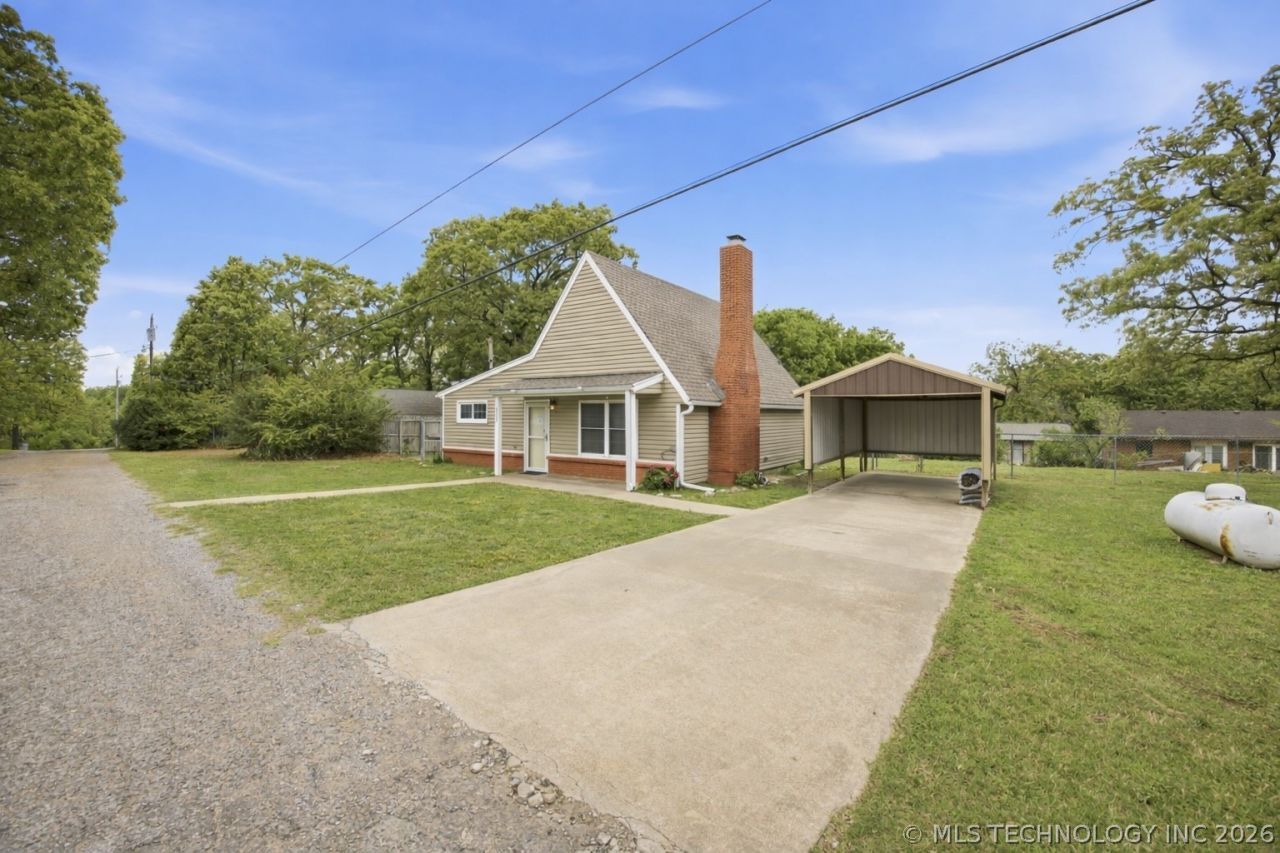 Welcome to your move-in ready lake retreat on .42 ACRES near Lake Eufaula in Checotah! Located just about one block from water and boat ramp access, this property offers the perfect lake lifestyle without the lakefront price! Conveniently located less than 10 minutes from I-40, it's an easy getaway for weekend or summer visits. Enjoy the close proximity to Fountainhead Marina and Lake Eufaula State Park, with swimming, fishing, camping, and golf at Fountainhead Creek Golf Course all only 10 minutes away. This 3 bed, 2 bath home offers 1,116 sqft with an open and spacious layout centered around a fully bricked fireplace. Both downstairs bedrooms feature en-suite bath access. The kitchen includes lots of storage with plenty of cabinet and counter space plus a stainless steel Frigidaire dishwasher! Fridge, stove, and microwave all also remain! Outside features a covered front porch, carport, 2 outbuildings, and fully fenced backyard on two spacious lots with space to build a shop! Recent updates include brand new carpet, a roof less than one year old, and septic tank emptied with cap replacement in summer 2025. Situated on two fenced lots totaling 0.42 ACRES, there's plenty of room to enjoy with extra room for a shop for all the toys! Don't miss this opportunity to own a lake home just steps from the water just in time for all the summer fun at Lake Eufaula!