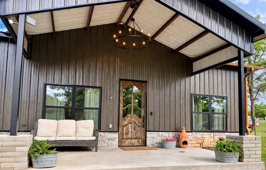 This one is the definition of opportunity meets style. Sitting proudly with bold barndominium curb appeal, this incredible property offers 1,720 livable sq ft, plus an addition 1480 sq ft shop space and an additional 600 sq ft loft for storage. Currently zoned commercial, this property opens the door to endless possibilities - operate your business, create a live/work setup, Airbnb concept, event venue, showroom, workshop, or easily convert to residential zoning in a very cost-effective way.Step inside and fall in love with the warm modern farmhouse finishes. Open-concept living with soaring ceilings & exposed beam accents, oversized kitchen with huge island seating, double ovens + custom vent hood plus TWO walk-in pantries. Beautiful stained concrete floors with a custom cut-tile look.A spacious mudroom/laundry area. Designer bathroom finishes, rustic luxury touches throughout the home.Outside, the statement porch welcomes you home while the surrounding space gives room to expand, build, park equipment, or grow your vision.Whether you're an entrepreneur, investor, or someone wanting a one-of-a-kind Brando lifestyle... this property is a rare find that can't be duplicated at this price point.